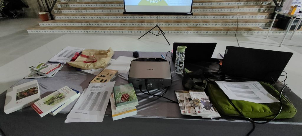 A continuación, nos sumergimos en el fascinante mundo de los polinizadores, con una actividad muy participativa en la que los asistentes pudieron observar materiales divulgativos, infografías, muestras al microscopio y participaron en juegos interactivos que ayudaron a comprender la importancia de abejas, mariposas y otros insectos en la biodiversidad del entorno.